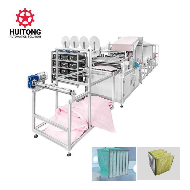 全自动无隔板空气过滤器生产线,采用微电脑控制,操作及维修筒单,运行稳定可靠,用于生产各种规格的高效、亚高效玻璃纤维无隔板滤芯.机器采用微电脑控制,总线通过伺服机构连动。具有操作筒单,运行稳定可靠等特点。一、机器特点:1、精心设计制造和精选配件及其供应商,保证机器的高品质和高性能。2、采用智能数控系统,实现整机功能的自动控制。 采用人机界面操作系统,实现机器运行的屏幕操作。3、精心调校的整机性能,生产满足用户期待的品质卓越的产品。4、操作筒单.微电脑控制.无须编程.滤材压波涂胶成型一次完成.起波成型自动调整机构,运行中可随意调整.涂胶为闭环控制,可连续涂胶和断续涂胶操任.计数断胶.二、机器功能:1、产品幅高; 本机可在20-120mm范围内生产任意幅高规格的产品。2、连续胶线和间断胶线;连续胶线:本机一般功能为产品胶线连续涂布。间断胶线和间断胶线起点控制:本机可选间断胶线涂布方式,通过间断胶线起点控制盘可随时随意调节